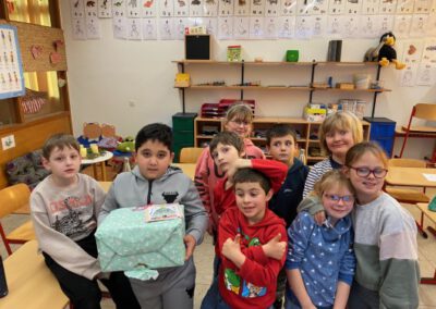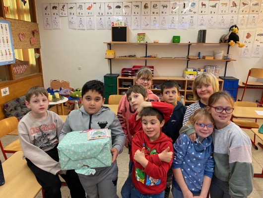 Jede Klasse durfte ihr Geschenk abholen und gemeinsam auspacken.