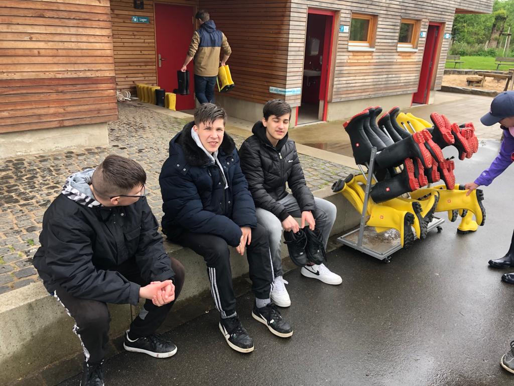 Als erstes haben wir uns versammelt und haben unsere Fahrräder aus den Keller geholt. Wir sind Richtung Gymnicher Mühle gefahren.