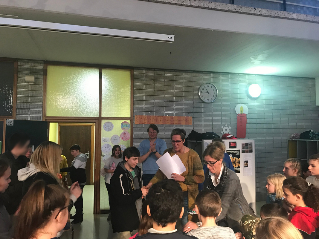 Neben der Verteilung des Weihnachtskakaos wurden am letzten Schultag alle Schülerinnen und Schüler, die am Lesewettbewerb teilgenommen hatten, mit einem Schokoladenweihnachtsmann geehrt. Die ersten drei Lesegewinner einer Stufe erhielten jeweils einen Buch- oder Spielzeuggutschein. Für drei Teilnehmer gab es jeweils einen Sonderpreis, da sie ihre Lesefertigkeiten im vergangenen Schuljahr erheblich gesteigert hatten. Anschließend wurden in vielen Klassen die Weihnachtsferien eingeläutet, mit gemeinsamen Frühstücken und kleinen Feiern.