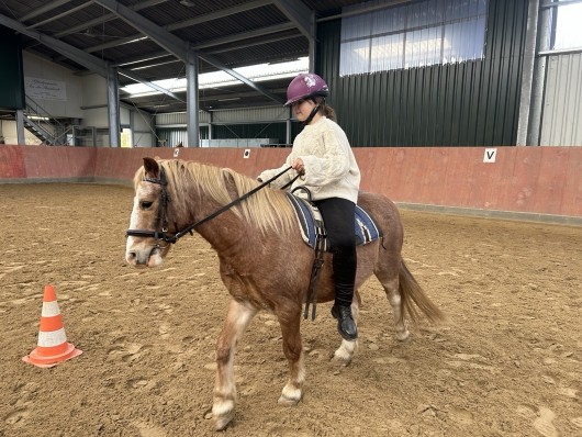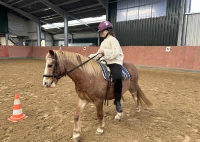 Im Reitunterricht zeigen die Kinder deutliche Fortschritte. Sie können die Zügel überwiegend selbstständig halten und die Pferde lenken. In der Reithalle reiten sie bereits verschiedene Figuren. Mit Unterstützung können sie antraben und erste Hilfen am Pferd geben. Auch das Anhalten und Losgehen gelingt zunehmend selbstständig.