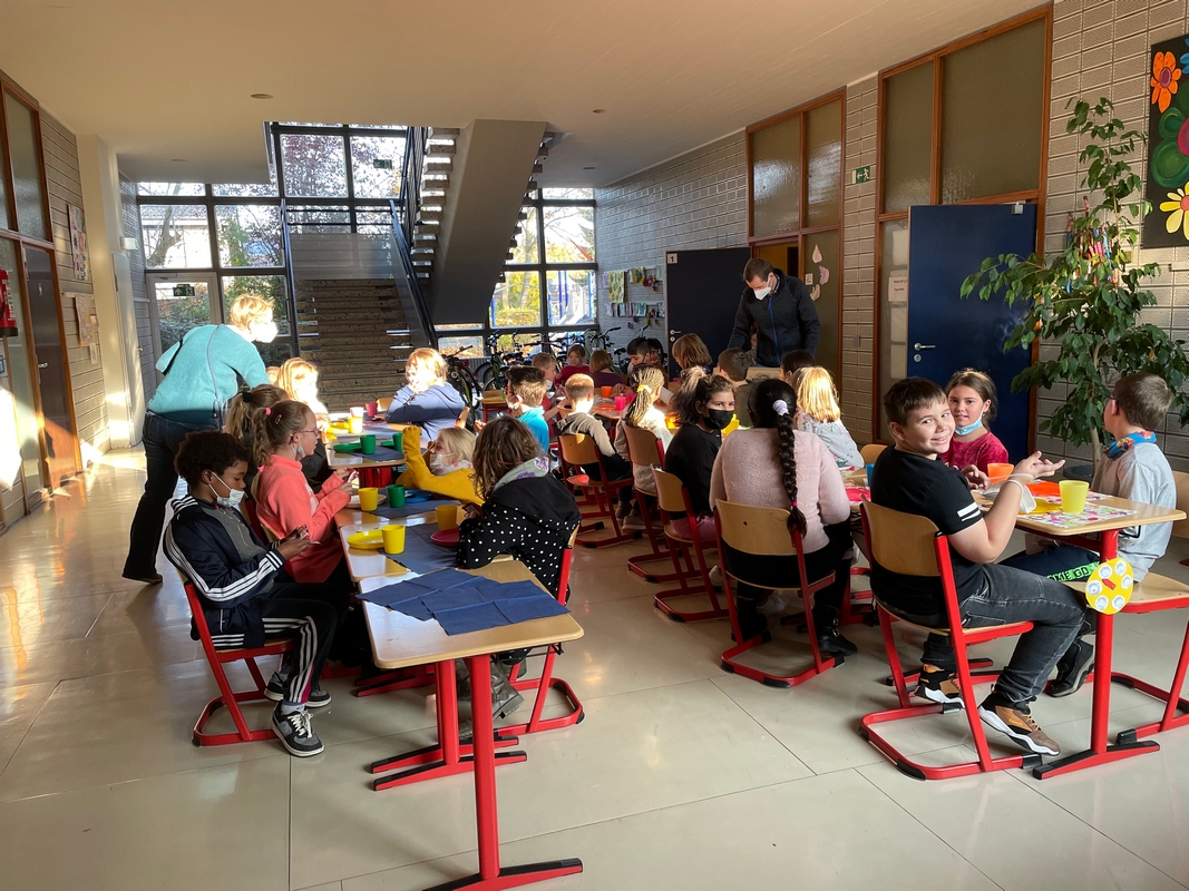 Anschließend hat die Klasse 3/4a von Frau Peifer einen Martins-Rap aufgeführt und wir haben bei Kakao und Apfelsaft Weckmänner gegessen.