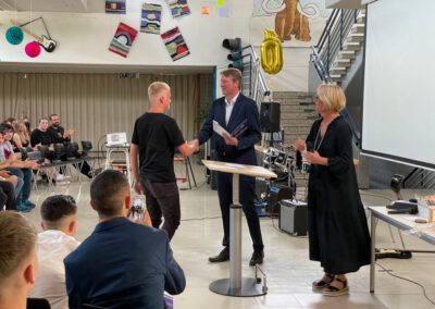 Frau Stelberg und Noah begrüßten alle Gäste und übergaben anschließend das Wort an den ersten stellvertretenden Bürgermeister der Stadt Kerpen, Herrn Addy Muckes. Im Anschluss richtete unser Schulleiter Herr Schiffer seine Abschiedsrede an die Klasse 10.