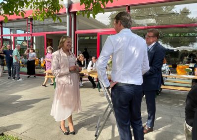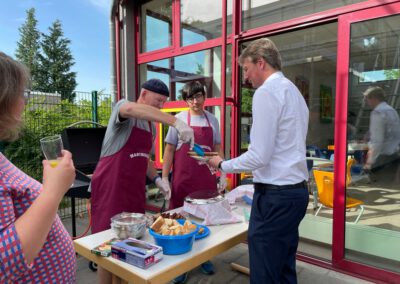 Nach der Übergabe der Abschlusszeugnisse und vielen Glückwünschen, stießen alle miteinander auf diesen Festtag an und bei bestem Wetter fand der Ausklang des Abends in der Mensa und auf dem Schulhof, mit leckeren Speisen und Getränken, statt.